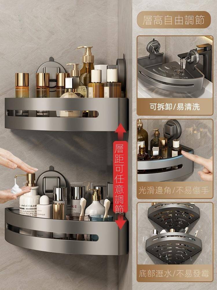 5分鐘前自帶吸盤,可隨時移動重復使用的置物架 免打孔廚房浴室衛生間三角置物架多用途壁掛收納架毛巾架 - 【超夯下殺】買一送二,共三入組 NT$998